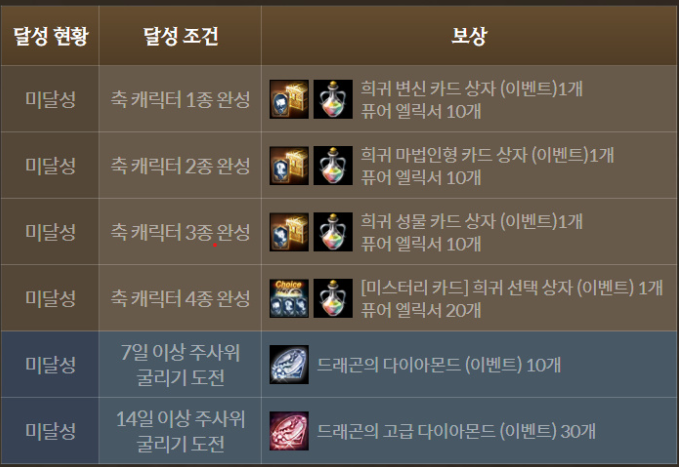 선택 보상은 선택 1은 뽑기팩, 수호석, 룬 등으로 스펙 상승에 도움이 되는 구성이며,