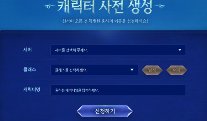홈페이지에 로그인하여 캐릭터를 미리 생성할 수 있습니다.