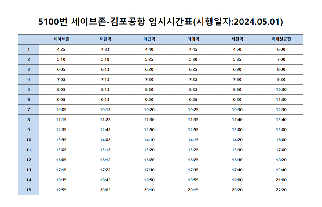 성남 김포공항 리무진 5100 시간표
