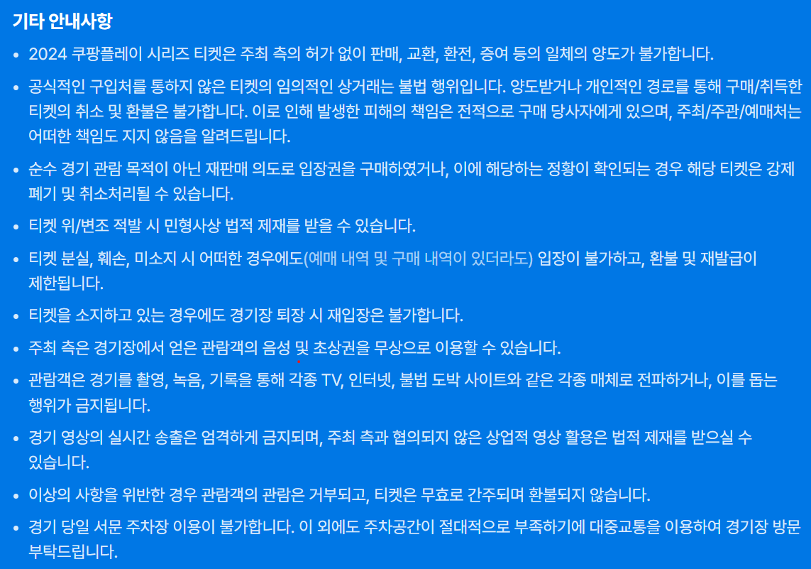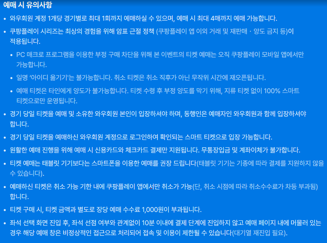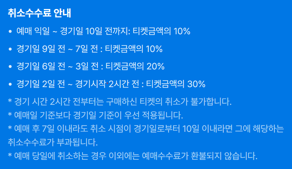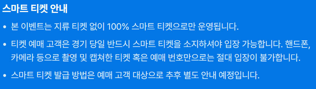 ▶ 휄체어석 예매 티켓은 현장 수령만 가능하며 경기당일 예매자 본인이 직접 티켓을 수령해야 합니다 .대리수령 및 양도 불가합니다.
