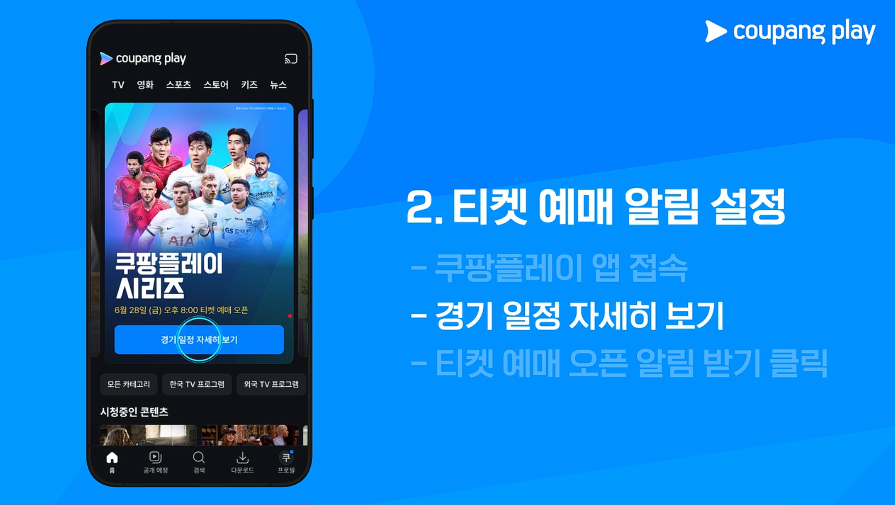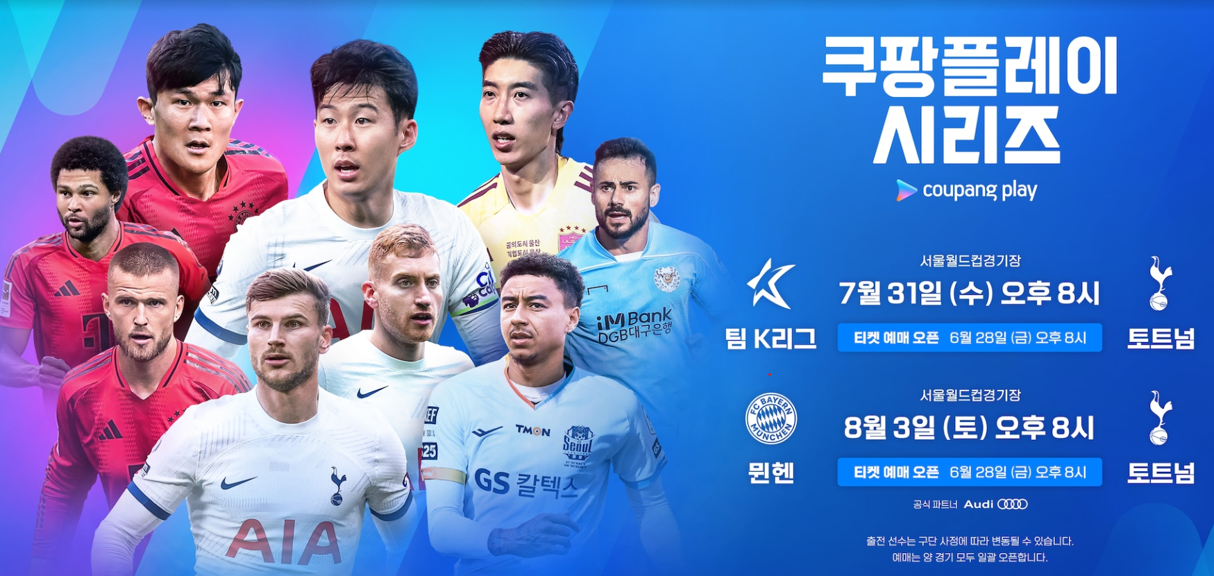 오늘 드디어 6월 28일 한국에서 토트넘과 뭰헨, K 리그 경기 예매가 시작됩니다.
