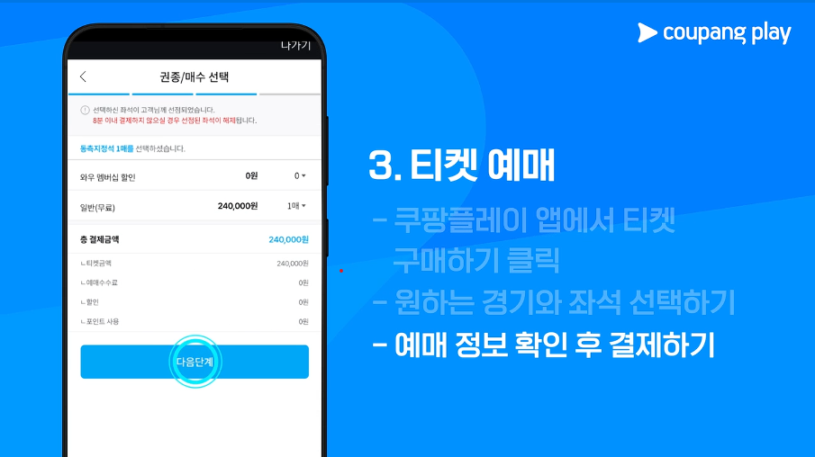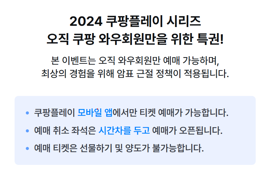 쿠팡플레이에서 독점적으로 티케팅을 하고 있습니다. 티켓예매는 모바일에서만 가능하며 와우 멤버십 회원들에게 우선으로 주어지며 비회원도 30일 무료 체험을 통해 예매하실수 있습니다.