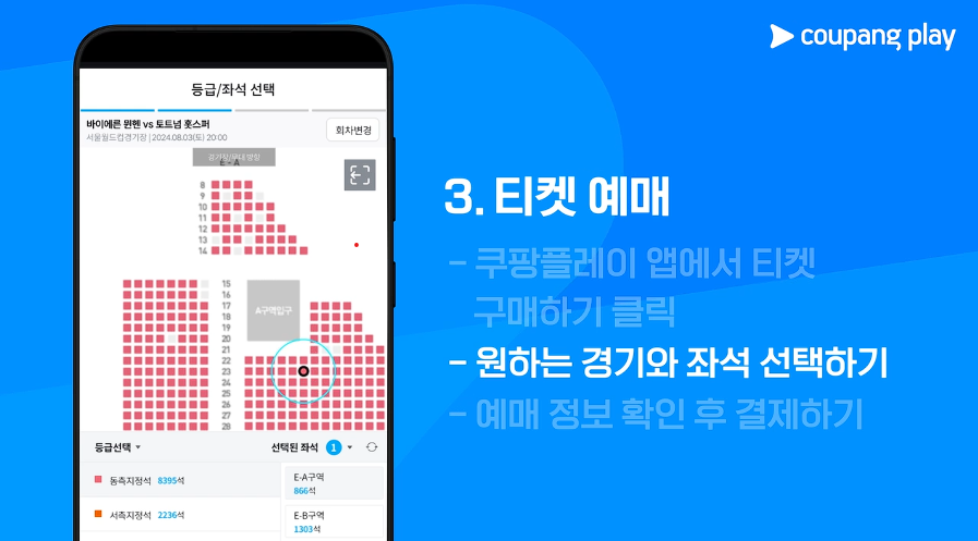 메인경기 예매좌석과 동일한 곳에서 관람가능합니다.