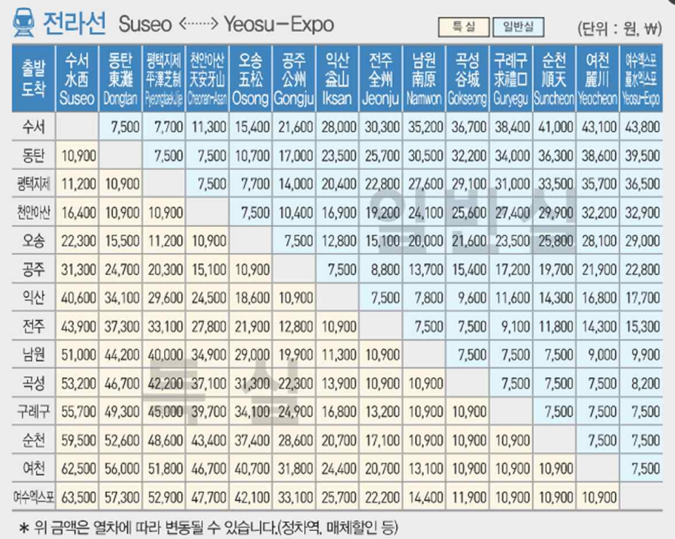 전라선 운임